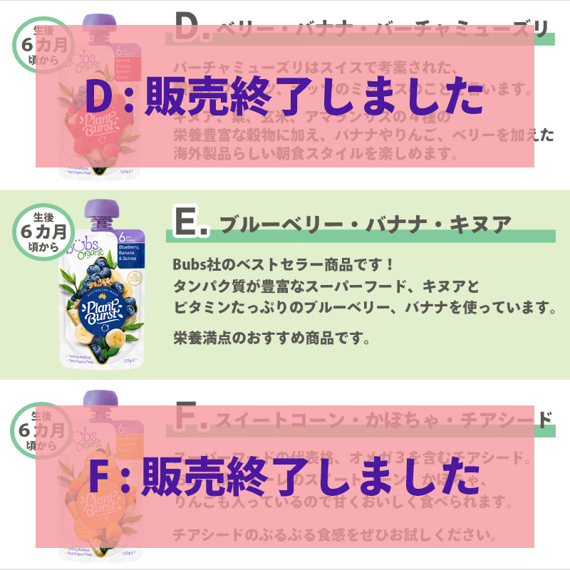 当店で販売しているベビーフードは、オーガニック粉ミルク・ヤギ粉ミルクでおなじみのBubs Australia (バブズ オーストラリア)から新しくなって新登場した「Organic Plant Based Baby Food Pouch(オーガニック プラントベース ベビーフードパウチ)」です!